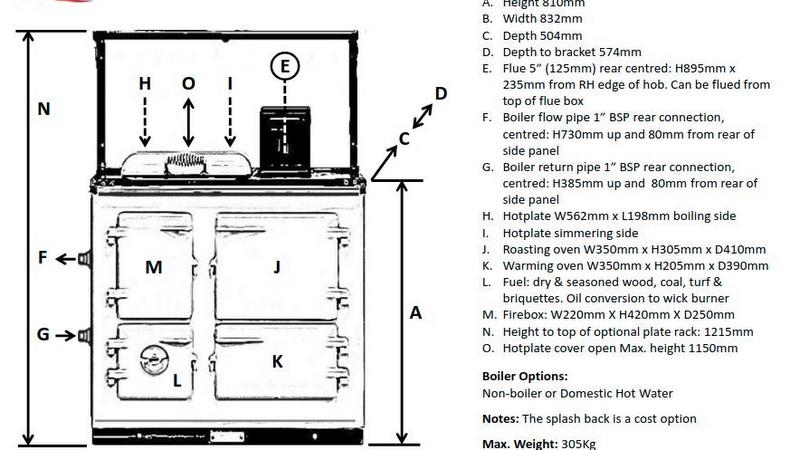 Smith & Wellstood has a distinguished history of producing range cookers in Scotland, with the two-oven model being particularly well-received in Ireland. This Wellstood model is equipped with an elongated hotplate to facilitate the simultaneous heating of multiple cooking vessels. Airflow control is managed by a rotary damper integrated into the ash box door. Consumers can select between two versions of the cooker: one inclusive of a water boiler and one without.
